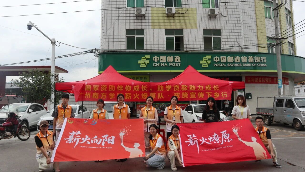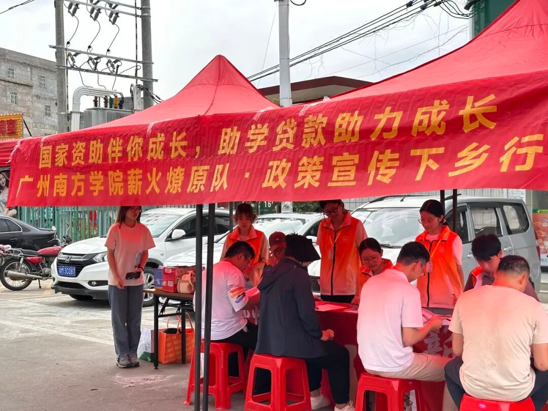7月7日上午,薪火燎原队在兴宁市罗岗镇中国邮政门前开展了一场别开生面的国家资助政策宣传活动。队员们通过设立政策咨询摊位,以面对面交流、一对一答疑、发放宣传手册等方式,向村民们详细解读国家资助政策体系,尤其针对助学贷款的申请条件、办理流程等关键信息进行了重点解读。宣传过程中,队员们结合具体案例,用当地的方言以及通俗易懂的话语将政策要点讲深讲透,确保群众不仅"听得明白",更能"用得顺手",切实打通政策落地的"最后一公里",让暖心助学政策真正贴近群众。