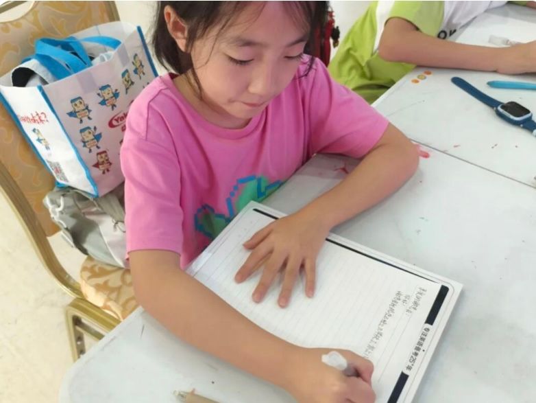 小朋友们认真完成书法作品中