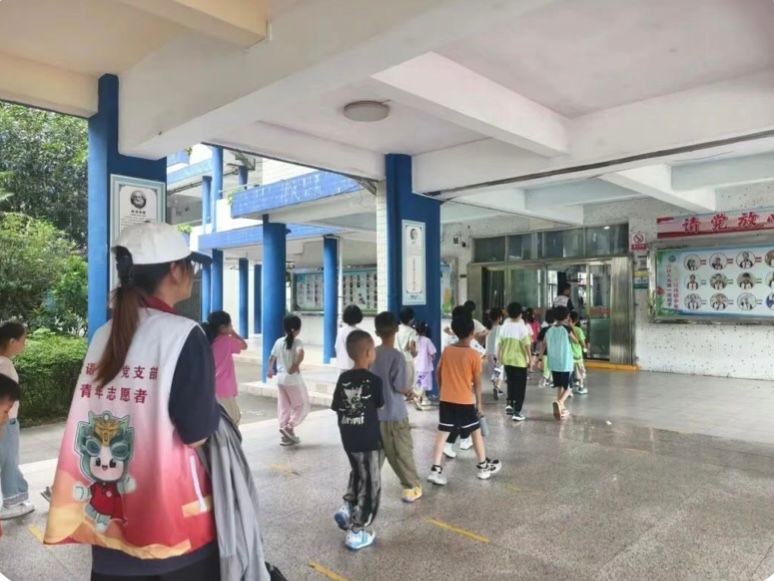 上午,文鼎筑梦传薪队的志愿者们早早来到教室,有序组织小朋友们排队,一路细心护送他们前往操场,开启活力满满的体育课。