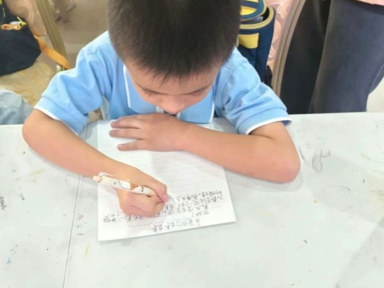 小朋友们认真写信中