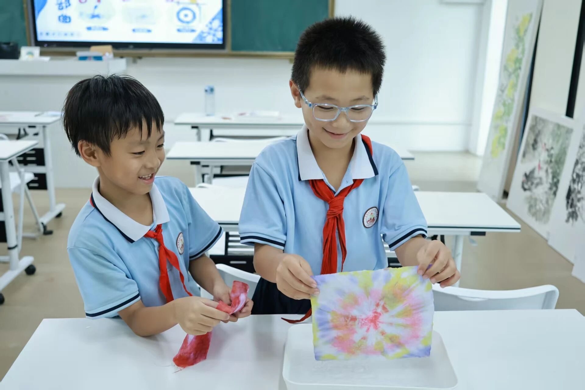 这堂扎染课,不仅让孩子们体验了动手的快乐,更让千年非遗文化以鲜活的方式走进童年。每一道绳结,都是与历史的对话;每一寸染布,都是文化传承的小小注脚。