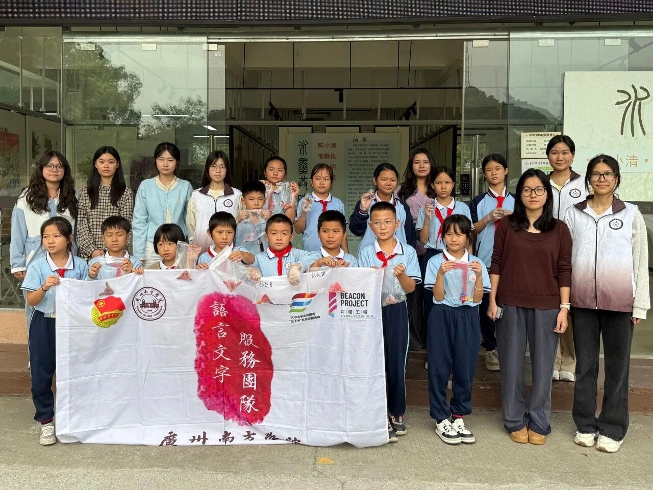 2025年10月28日,伟德国际1946语言文字服务团队在游婉雯老师的带领下,走进善施小学,开展了一场别开生面的扎染多色染法体验课程。
