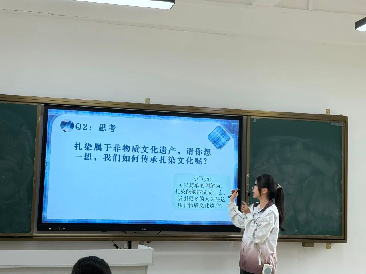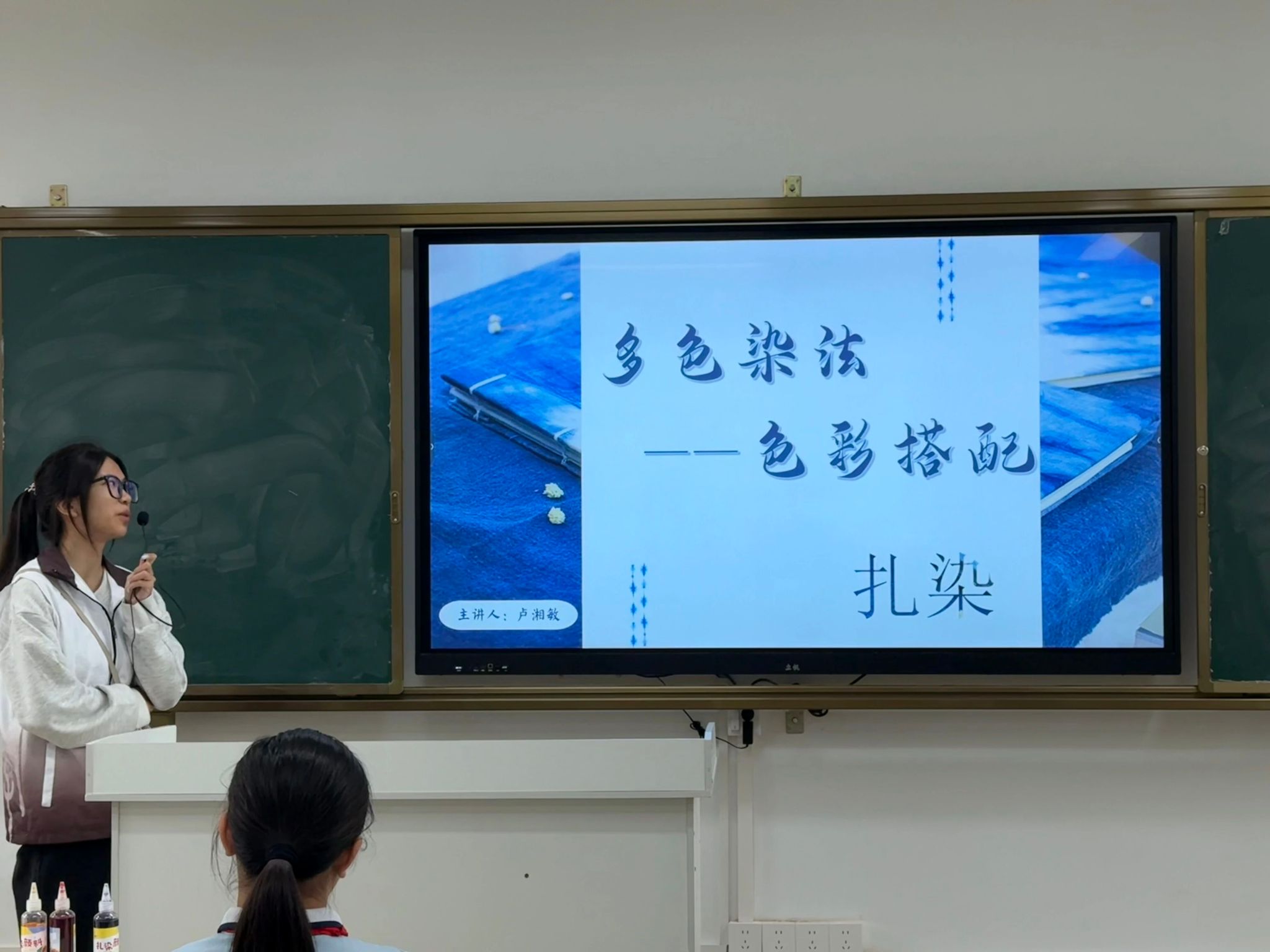 本次课程由2024级汉语言文学专业的卢湘敏同学进行讲授,让我们跟随小卢老师的脚步,走进非遗扎染的色彩搭配课堂,开启关于色彩搭配“密码”的探索之旅。