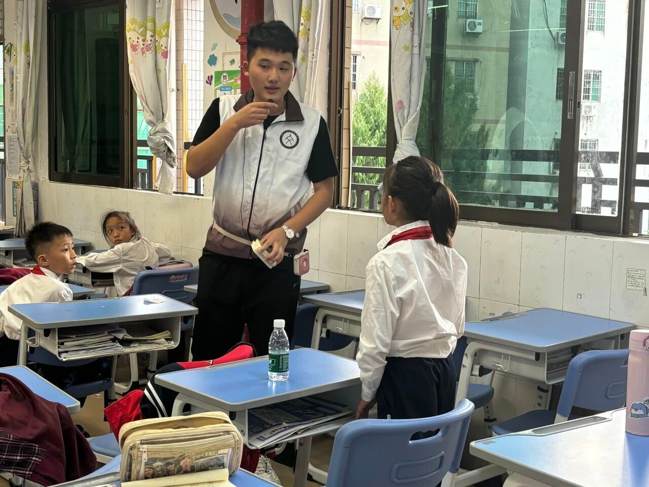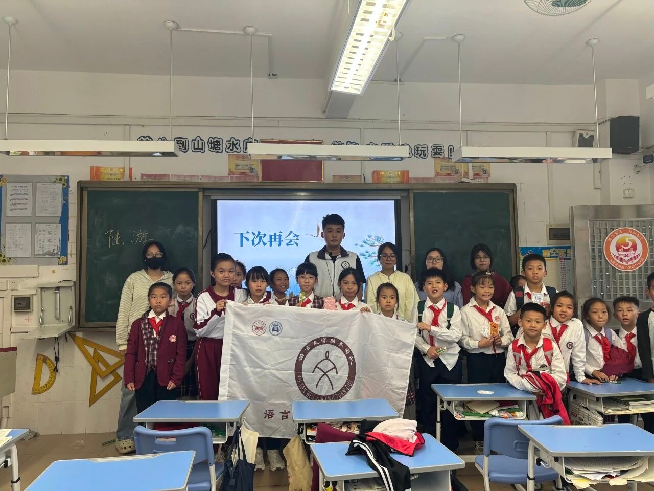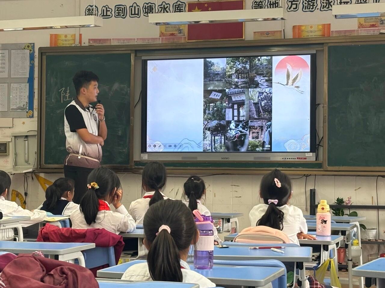 最让同学们沸腾的,莫过于播放陆游人生足迹图前的互动环节。小宋老师轻轻抛出一串问题,如石子入水,激起层层思考的涟漪:“陆游爷爷毕生夙愿,便是‘王师北定中原日’,期盼着一个完整统一的国家。那么小朋友们,你们觉得,我们今天的祖国,已经实现他当年的梦想了吗?作为小员工,我们又能做些什么,让脚下的这片土地更加团结、更加完整呢?”一连串的提问,点燃了孩子们眼中的光,也让思维的翅膀在历史与现实的交汇处自由翱翔。