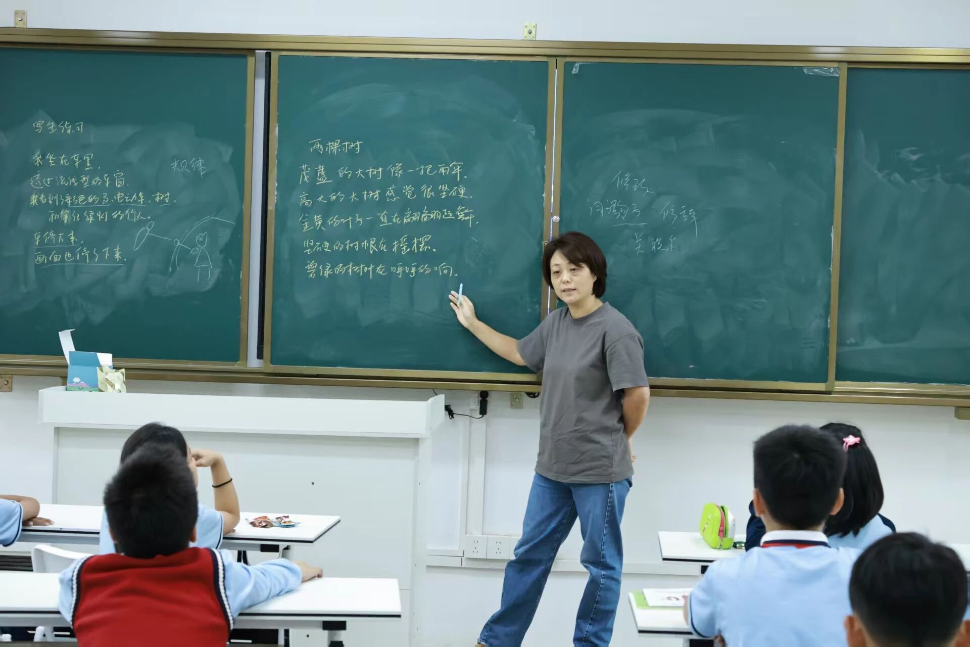 老师通过分析一篇员工诗作(“茂盛的大树像一把雨伞……”),引导同学们现场运用这“三大法宝”进行诊断,同学们都踊跃发言,在这个过程中加深了对修改要点的理解。