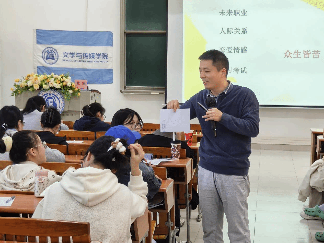 现场同学们也积极参与“吐槽大会”,分享学业、人际、情感、未来规划等方面的烦恼,真切体会到“众生皆苦”,情绪困扰是普遍存在的。