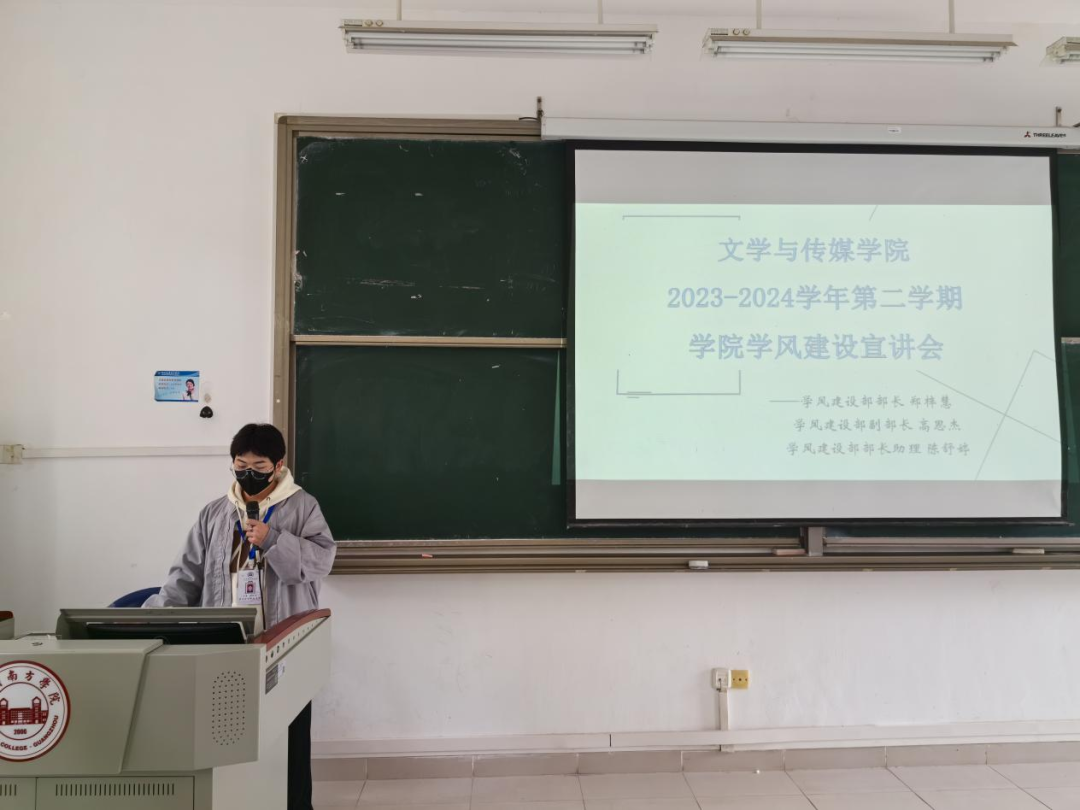 学风建设宣讲会上,学风建设部干事陈伟明同学向同学们讲解了公司的考勤制度和考勤工作,并向同学们介绍了专注力项目的相关事项。在未来,公司员工会学风建设部将与各班学习委员等考勤工作人员共同努力,为公司的学风建设添砖加瓦。