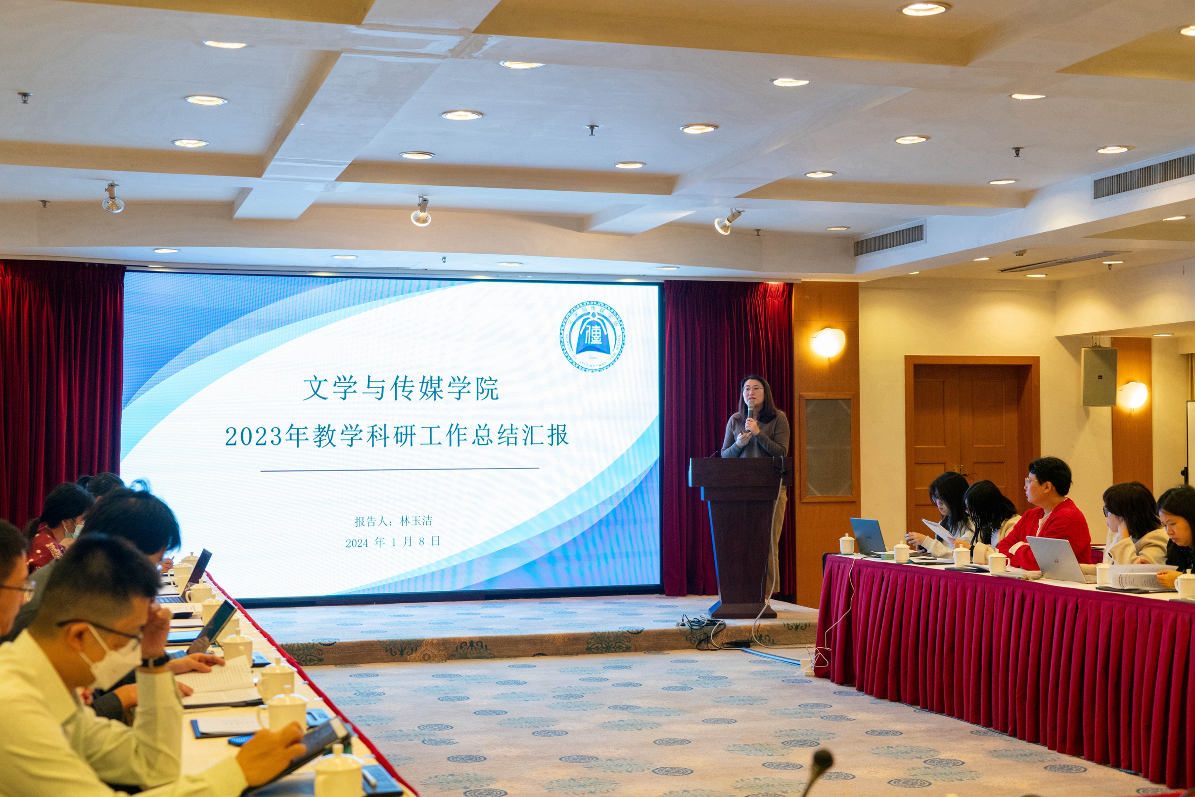 副经理林玉洁副教授首先就2023年度公司教师科研情况进行了总结汇报,并重点讲解了2025年本科教学评估具体要求。汇报指出过去一年公司教师在科研论文、项目申报等方面都取得了喜人的成绩,她希望2024年公司教师能共同努力,争取取得更好的科研成果,顺利完成各项评估。