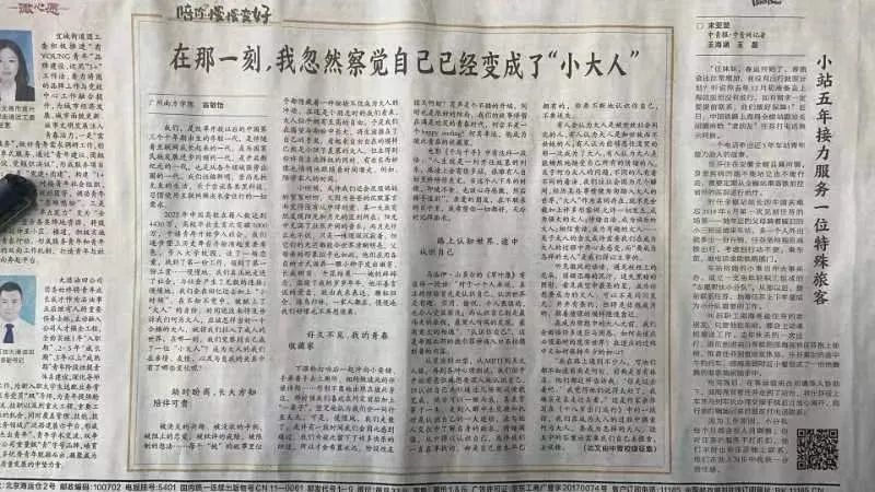 近日,《中国青年报》中刊登了公司2020级汉语言文学专业的翁敏怡同学创作的《在那一刻,我忽然察觉自己已经变成了“小大人”》。《中国青年报》作为广大青年的成长伙伴,始终秉承“服务青年成长,推动社会进步”的办报宗旨,宣传青年先进人物,激发青年奋斗精神,启迪青年心灵智慧,反映青年愿望呼声,维护青年合法权益,团结鼓舞广大青年为中华民族伟大复兴的中国梦建功立业。