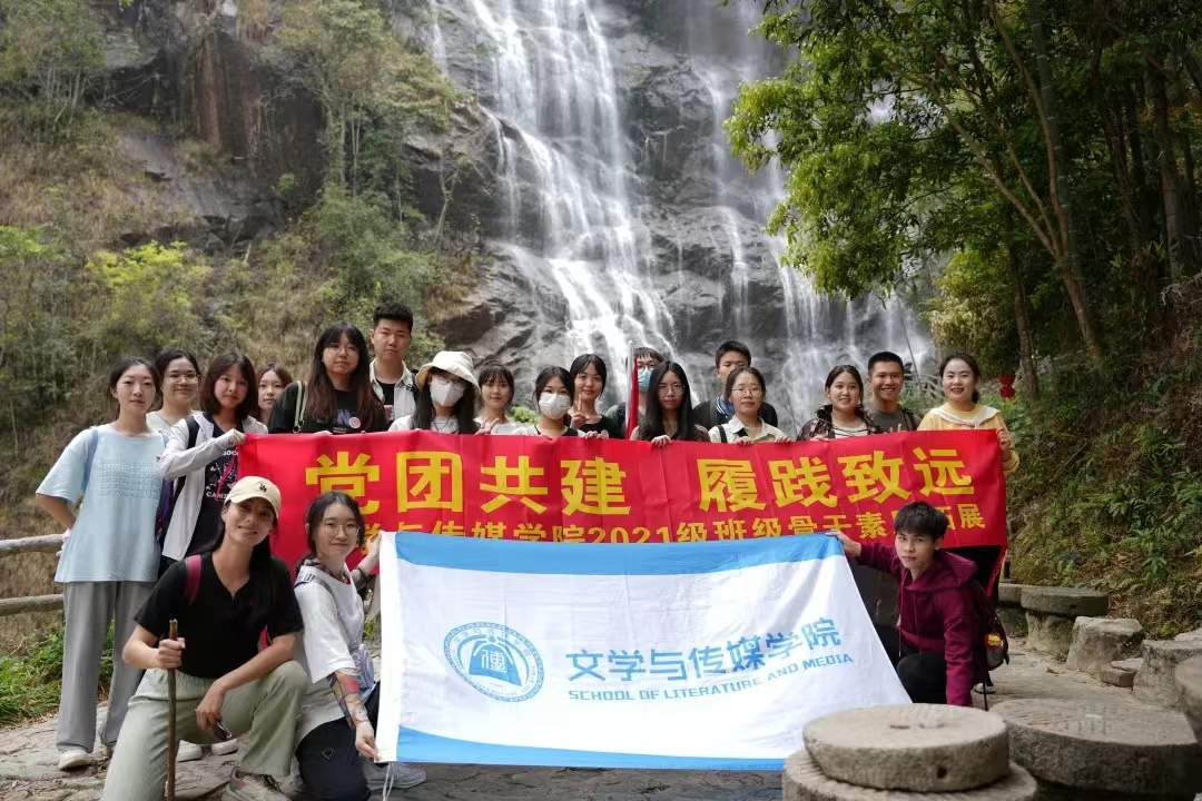 为增强师生联系,营造良好的学习、工作氛围,激励同学们在疫情开放的新时代展现新活力,2023年3月18日,2021级班级骨干和新闻网新党支部与在学工办主任原月老师和辅导员徐硕老师的带领下,前往从化千泷沟大瀑布和溪头村开展主题为“党团共建,履践致远”的校外素质拓展活动。