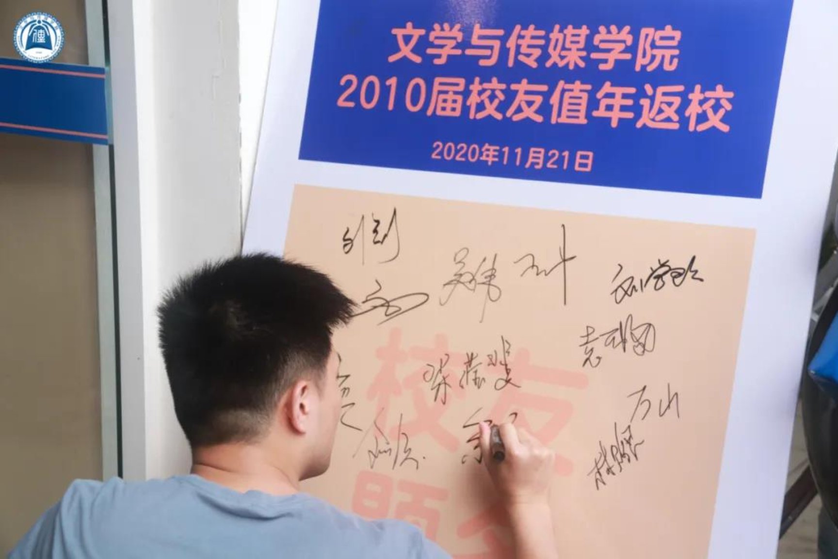 在题名板上留下名字
