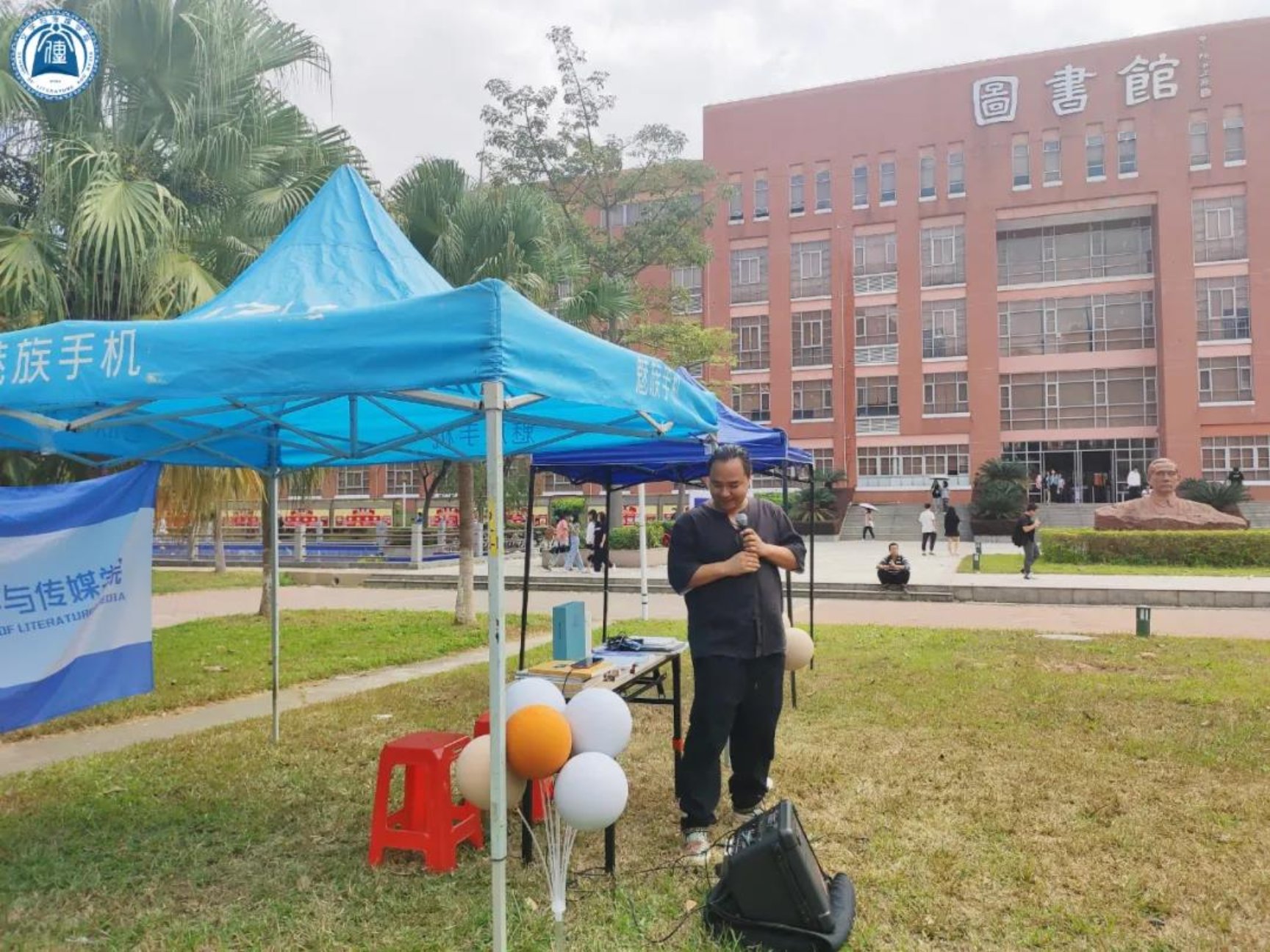 师兄师姐们齐聚图书馆前中央大草坪