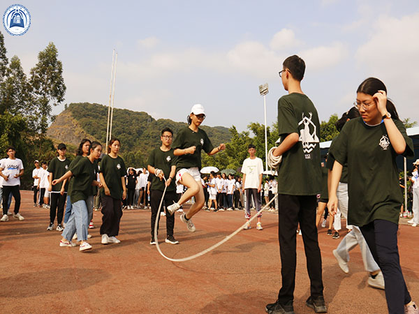 趣味项目中,跳大绳的选手们默契满满,随着绳子的一起一落,节奏紧凑,跳跃出青春活力。此外,十人十一足的选手们十分整齐划一,在“一二一二”的口号声中,大步迈向终点。