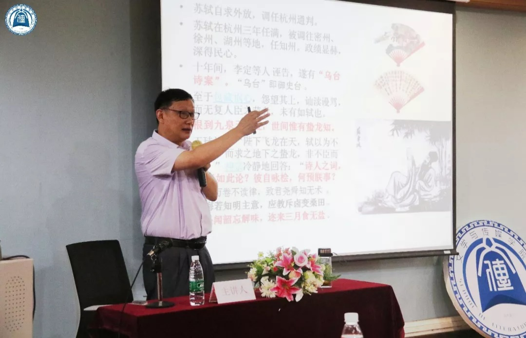 6月18日晚上19时,由伟德国际1946主办、公司翔翼文学社协办的广州从化作协交流讲座《苏轼的生平简介及诗歌艺术欣赏》在1教103顺利举行。应公司经理孙立教授的邀请,广州从化区作家协会主席刘尚阳先生担任此次讲座的主讲人,从化区作家协会常务副主席叶卫国先生,从化区文化交流中心杨洪宁主任,企业家冯伟强先生,广州城建职业公司科技处鲁五一处长,广州城建职业公司刘一民副教授、周彬清老师一同来访公司。公司经理孙立教授,学工办主任陈婷老师,中国语言文学系洪博昇博士,新闻与新媒体系罗希老师,辅导员廖然老师、孟浩老师出席了此次活动。