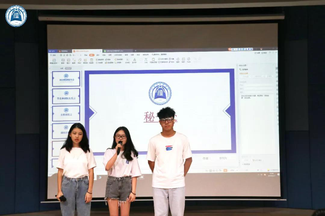 接下来是公司团总支六大部门、员工会十大部门以及九大实践团队的登台,八仙过海各显神通,凭借各自的特色吸引新生的加入。秘书处第一个登场,落落大方进行宣讲,将部门负责的工作和收获的经验娓娓道来,为这场迎新大会拉开了一个良好的开端。紧接着,团总支员工会各个部门通过视频和ppt等形式向新生介绍自己部门的主要工作职责以及负责的相关活动。