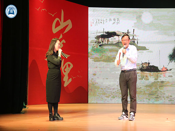 “春江潮水连海平,海上明月共潮生。”晚会神秘嘉宾——从化区作协主席刘尚阳先生声情并茂的朗诵,诵出了《春江花月夜》的优美意境和“孤篇盖全唐”的气概。朗诵穿插陈婷老师搭配的情景小剧,赢得了现场阵阵掌声。
