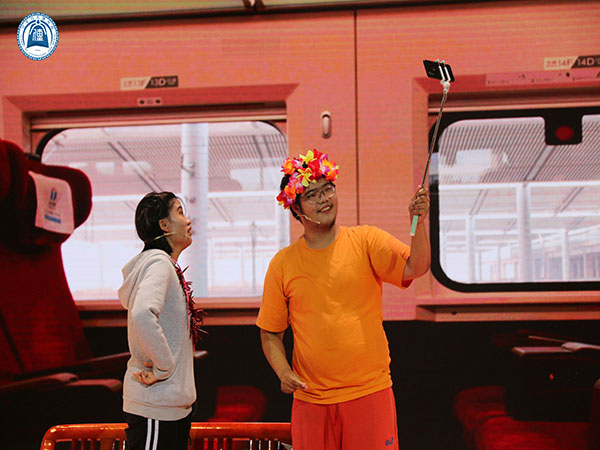 第二篇章结尾,“白发老人”装扮成“土地公公”,在现场为给大家送来了特色美食。现场气氛高涨,同学们都积极加入到了这场竞猜美食的互动当中。