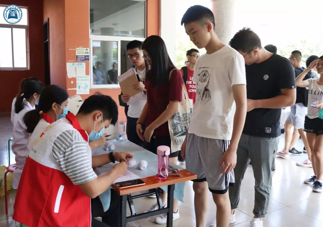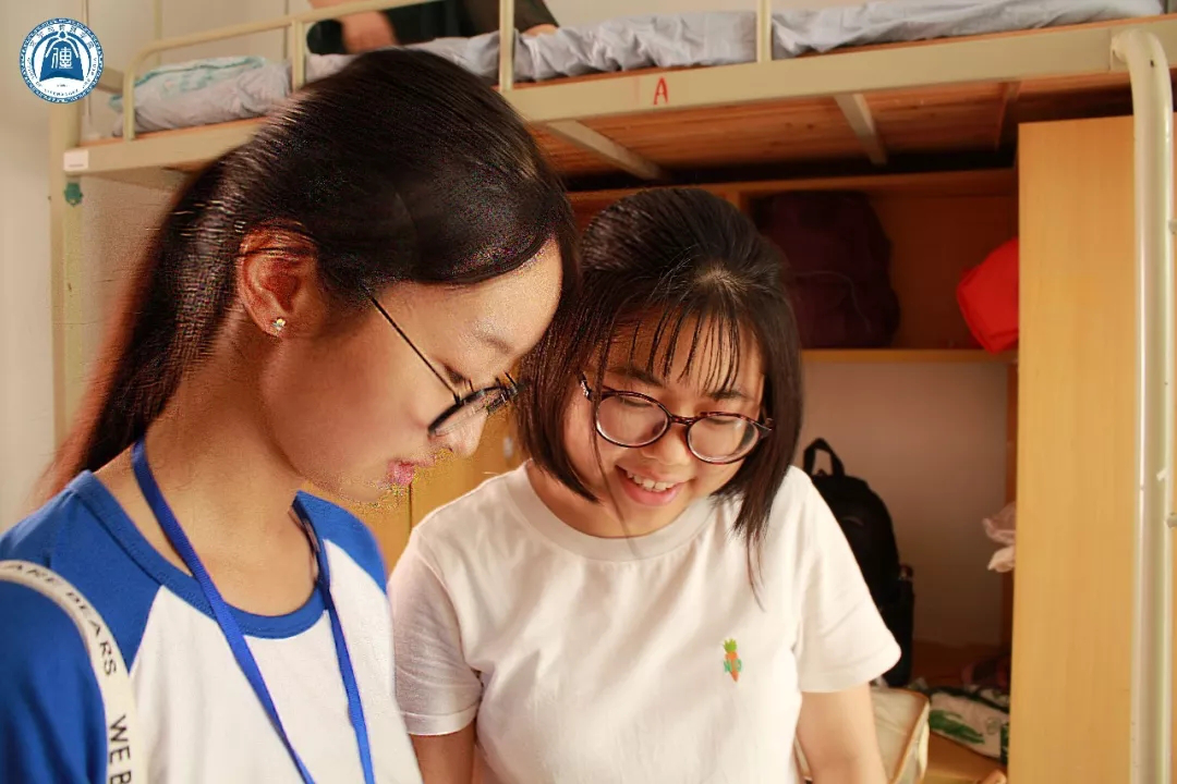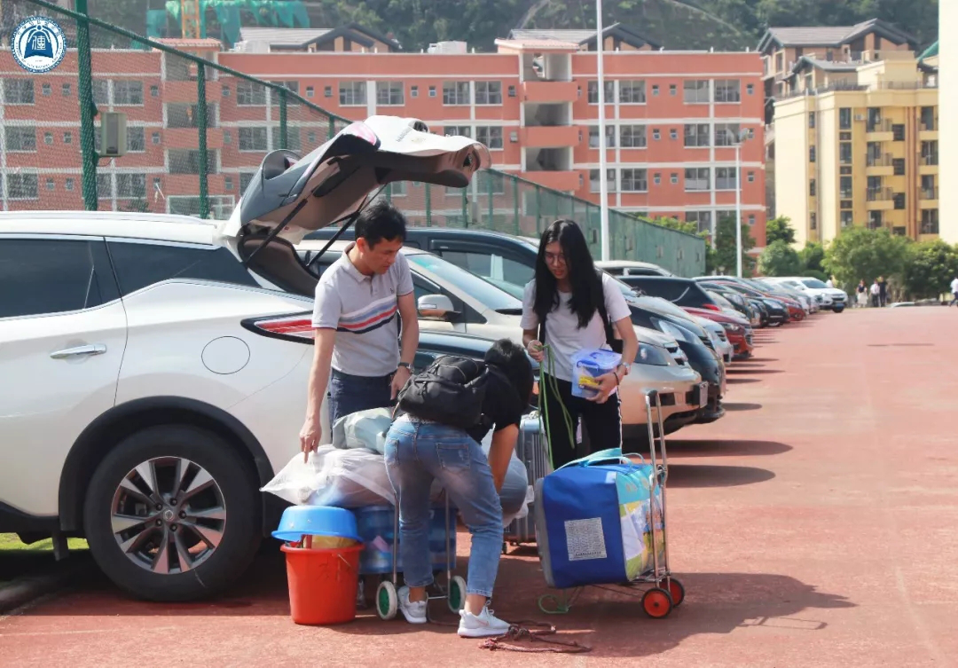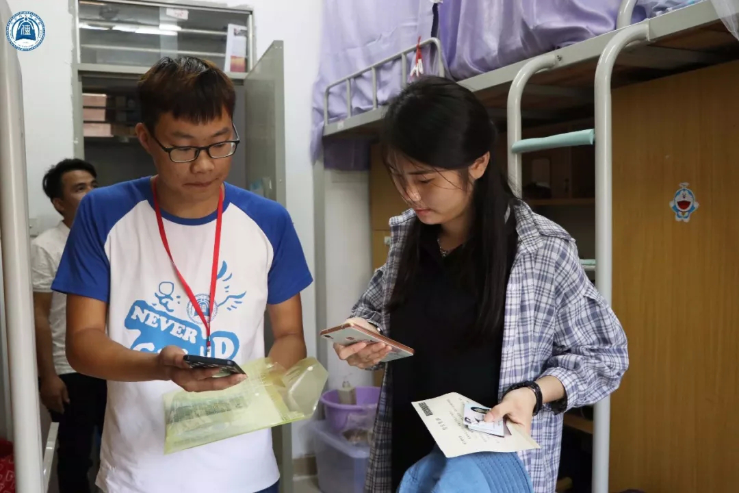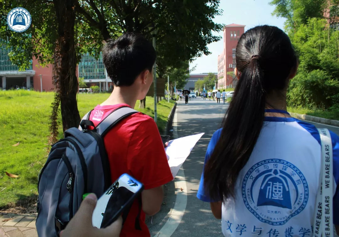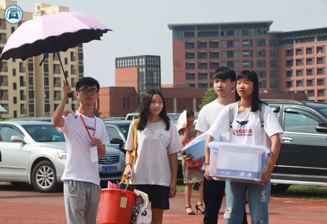 随处可见身穿文传蓝色院服的学长学姐们带领新生入住宿舍,即便是看起来瘦弱的女生,帮忙提起行李来也十分稳当。她们互相递着纸巾擦拭汗珠,交谈时揉着酸痛的肩膀,脸上却洋溢着笑容。在学长学姐的热情帮助下,新生完成了报道的所有程序。