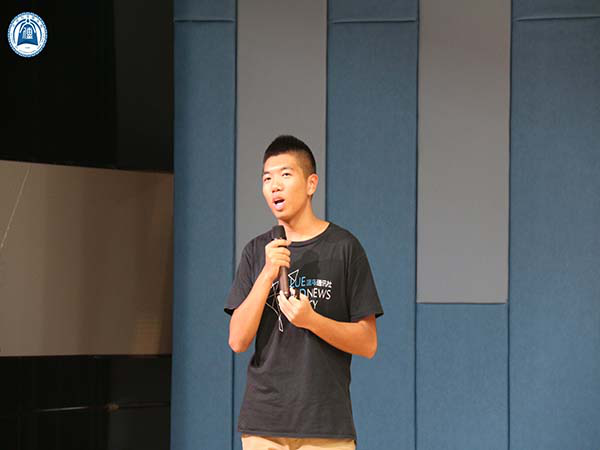金唛司仪队通过他们专业的能力展示了他们主持的风采,与新成员团结一致的口号令人振奋;聚焦影视社在演讲的最后展示了他们创作的以新生军训剪影为主题的视频作品,视频中节奏强烈的音乐和“踩点”的军训片段相得益彰;蓝鸟通讯社展示了他们部门扎实的建设,及其对新闻的认真和热情;“每一颗眼泪是一万道光,最昏暗的地方也变得明亮。”魅声歌唱队以一首自弹自唱的《一万次悲伤》作为开场,将观众们带入到了抒情音乐的世界里。