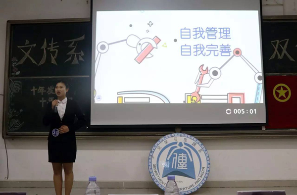 最后,肖君老师为大会致闭幕词,她充分肯定了团学这一年的工作,并对新一届团学委员会委员寄予厚望,期望他们牢记自己肩负着的信任与希望,继承文传系的优良作风和传统,努力拼搏,把我系的员工工作推上一个新台阶。
