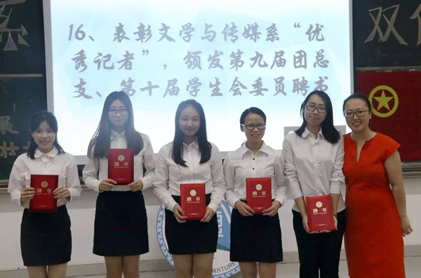会议尾声,大会表彰了本年度我系“优秀记者”,同时为第十届团总支、第十一届员工会委员颁发聘书,对上一年度员工工作成绩给予肯定。