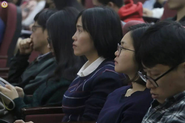 在文化方面,李克和教授介绍到明代文学总的发展形势是呈马鞍形。此时期理学应用登峰造极,人文思潮蓬勃兴起,对孔孟之道否定也最为彻底,还有众所皆知的八股取士此时亦发展到顶峰。讲座中,他讲到朱元璋当朝期间因认为文人作品里个别字词别有他意而下令处死诸多文人,当时文人的处境可谓伴君如伴虎,同时指出长期的思想文化禁锢也限制了明代的文化发展。李克和教授幽默风趣的语言引起了同学们阵阵笑声,在互动环节中,他耐心详细地解答场下员工的困惑,赢得了在场同学的阵阵掌声。