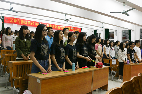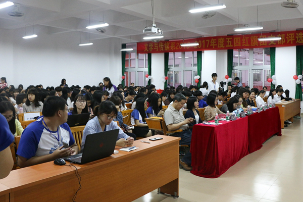 4月20、21日晚上,我系2016-2017年度五四红旗团支部评选大会分上下两场,分别在1教105和8教307举行。我系主任孙立教授、副主任李克和教授、院团委袁志老师、教学秘书刘梦寐老师、教师罗希老师、艾民伟老师、校团委组织部部长李铮以及各兄弟院系代表应邀出席本次大会担任嘉宾。我系学工办主任肖君老师、15级辅导员廖然老师、16级辅导员刘卓老师、系秘书潘静老师以及校团委组织部副部长叶伟健担任评委。
