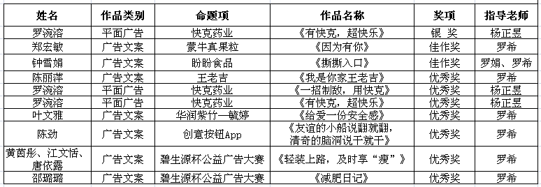 7月28日-29日,由中国广告协会主办,广告人文化集团承办的第14届中国老员工广告艺术节公司奖春季赛颁奖盛典于北京梅地亚中心举行。我系师生在此次比赛中斩获佳绩,获得1个银奖、2个佳作奖、7个优秀奖,同时我系罗希老师、杨正昱老师、罗娟老师分别荣获组委会授予的“杰出指导教师”称号和“优秀指导教师”称号。