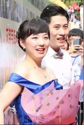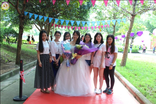 真快啊,今天我们俩就毕业了,但我们的心靠得更近,手握得更紧。毕业不分离,让我们挽着手,就像真的走向婚姻的殿堂那样,走完这条红毯!