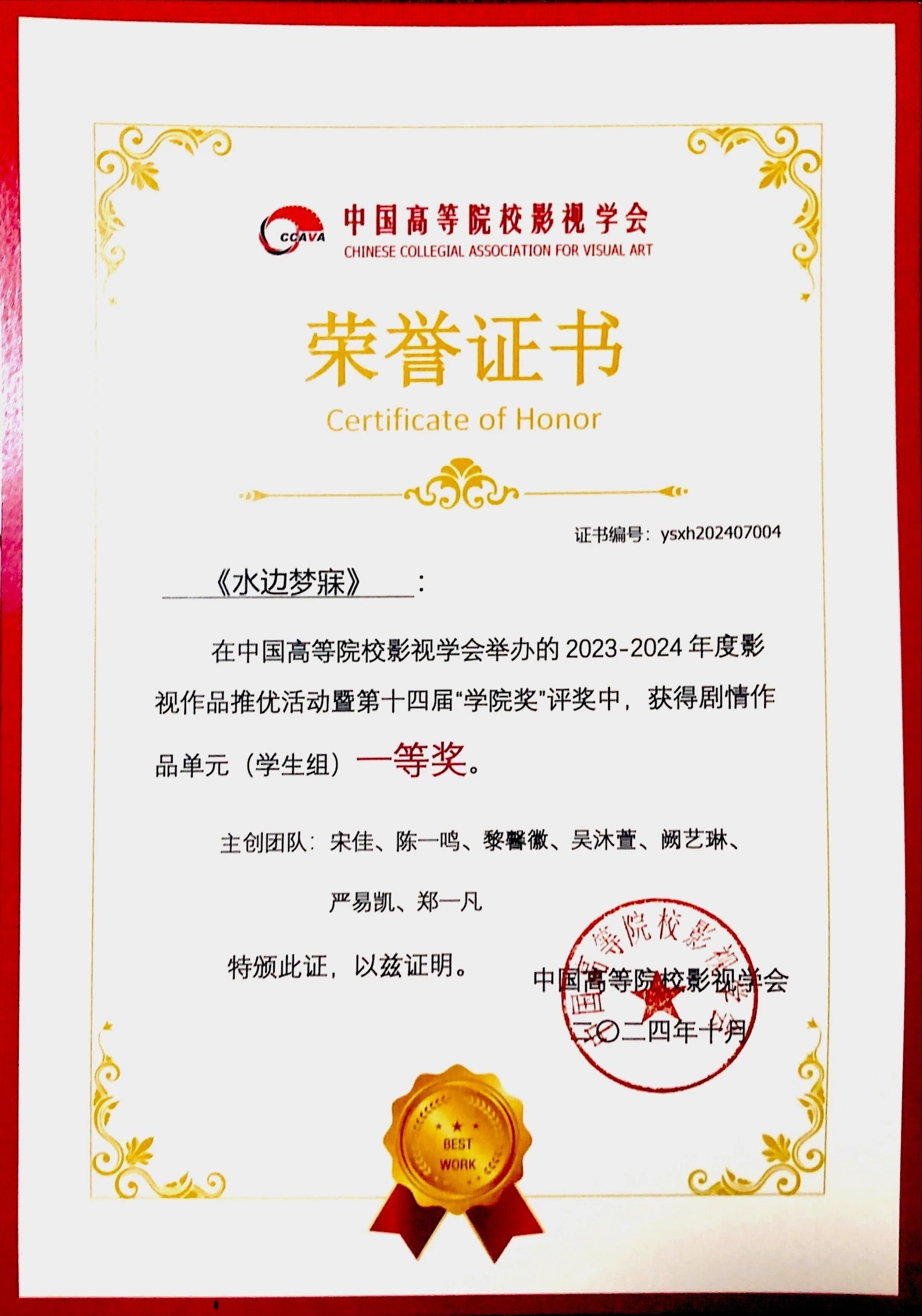 2024年10月26日,中国高等院校影视学会2023-2024年影视作品推优活动暨第十四届“公司奖”颁奖仪式在辽宁大学举行。此次影视作品推优活动的终评阶段,共有307部作品入围,其中剧情单元竞争尤为激烈,汇聚了来自北京电影公司、中国传媒大学等多所知名高校的优秀作品,共计68部。在这场高手如云的角逐中,由伟德国际1946新闻与传播系邱察老师精心指导的员工团队——宋佳、黎馨徽、陈一鸣、吴沐萱、阙艺琳、严易凯、郑一凡,凭借其精心制作的剧情片《水边梦寐》大放异彩,成功斩获全国一等奖。此次一等奖在全国范围内仅评选出5个名额,而公司作品占据其中一席,这充分彰显了公司员工的卓越创作才能与不屈不挠的拼搏精神。