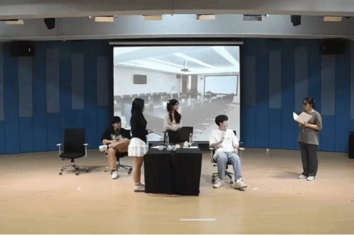 与戏中相似的是,紫阳戏剧社的同学们并不都来自同一种专业,同一个年级,但是大家因热爱而聚集在了一起。在筹备《红手印》过程中,同学们没有止步于表面的角色设定,而是深入挖掘每一个角色的内心世界,力求让每一个角色都拥有自己独特的情感脉络和性格特征。他们通过无数次的讨论、角色扮演和内心独白练习,逐渐让角色从纸面上跃然而出,变得鲜活而富有生命力。这份对角色塑造的执着与热情,不仅体现在对人物性格的精准拿捏上,更渗透在每一次情感的微妙转换之中,使得《红手印》中的角色形象饱满而动人。
