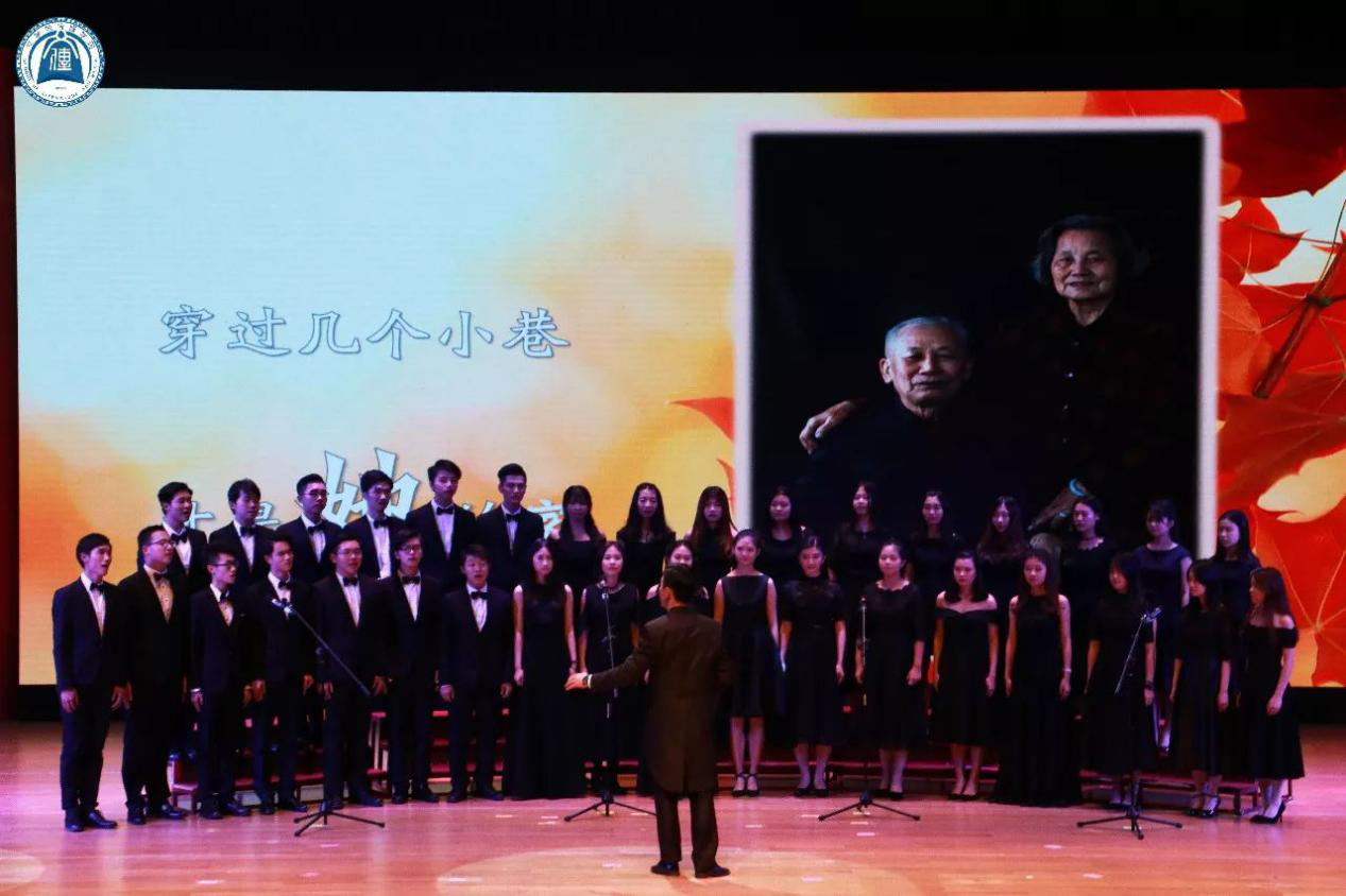 在你心中,外婆是怎样的人?想到外婆时,脑海里浮现的是与她大手牵小手的场景,还是她戴着老花眼镜帮你缝补衣服的时候?文传合唱团的《外婆》通过小剧场、钢琴伴奏以及合唱的表演形式勾起了大家对外婆的回忆,那一声声的“外婆”也牵动着我们对依恋外婆的心。或许在记忆的深处,你也想为熟睡的外婆悄悄地盖上一件衣服,给她带来小小的温暖。