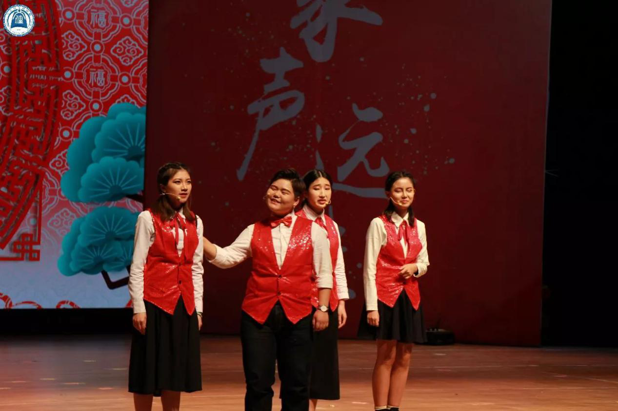 家是什么?是游子的避风港,也是照亮行人的一盏明灯。由15级新闻学2班、16级新闻学1班的同学带来的《一家人》拉开了晚会的序幕,舞者身着蒙古的特色服饰,伴着悠扬绵长的马头琴声,用奔放豪迈的舞姿向大家展示了蒙古人民的勤劳淳朴以及蒙古家族的团结与和谐。