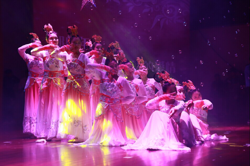 Free-boys组合带来的吉他弹唱原创歌曲《戴安娜》拉开晚会的帷幕。《溜溜的康定溜溜的情》舞蹈以豪迈而奔放的舞姿表现草原民族的独特风采和草原儿女对爱情的向往;《孔雀东南飞》以瑜伽舞蹈形式,演绎了这段焦仲卿和刘兰芝的唯美爱情故事;民舞《汉洛颜子兮》以诗屈才,并根据画壁里的爱情故事改编,演绎一段书生与壁画仕女的爱情故事;音乐系女子合唱团演唱的《生死不离》,用美妙的歌声唱出爱的执着与伟大;戏剧《王老虎抢亲》、话剧《妙计》均由员工们根据文学作品中的经典桥段改编而成,剧情紧凑,台词经典,赢得观众阵阵掌声;而舞台剧《那些年》用投入的演出与温柔的歌声带着观众一起走进青春的回忆,重温年少懵懂而稚嫩的爱情,引起了现场观众的强烈共鸣,许多观众纷纷落泪。我系老师带领三十多位文传团学干部演绎的《小苹果》更是将晚会带入另一个高潮,现场气氛高涨。丽影舞蹈队街舞《Marry Party》为整场晚会压轴,欢快劲爆的舞蹈为晚会画上圆满句点。
