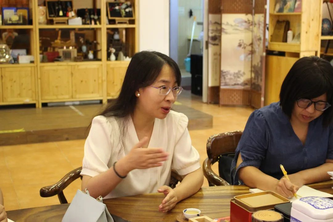 座谈结束,余锡捷副总经理带领叶娜、周凤玲老师一行参观了公司非遗产品研发与课程实践基地。非遗梦公司成立以来,一直致力于推动中华优秀传统文化的传承发展,秉承非遗保护新理念,助力非遗产业可持续发展。造纸工坊、茶艺雅舍、研学课堂等基地生动展现了非遗梦公司为非遗传承所出的努力和成果,显示出非移梦公司在文化赋能、跨界融合等方面的雄厚实力。