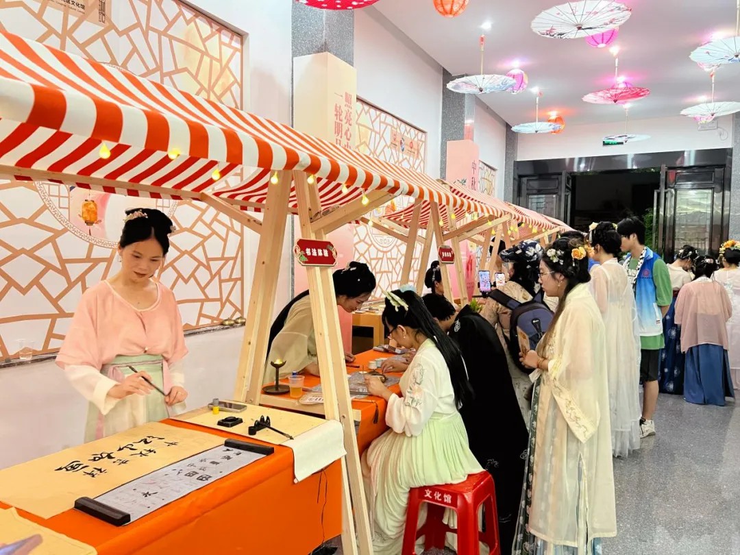 来到书法体验区,在亲手书写的一笔一划中,大家可以感受字体的力度和节奏,品味纸张与墨汁相结合的独特香气,这种亲身参与的体验让公司的师生们更加深入地了解中华民族特有的书法艺术,感受其中蕴含的中国文化和美学价值。在古风头饰和书法体验区,无论是参与活动的师生还是观赏者,都能从中感受到中国传统文化的深厚底蕴和独特魅力,进一步增强对中华文化的认同和自豪感。