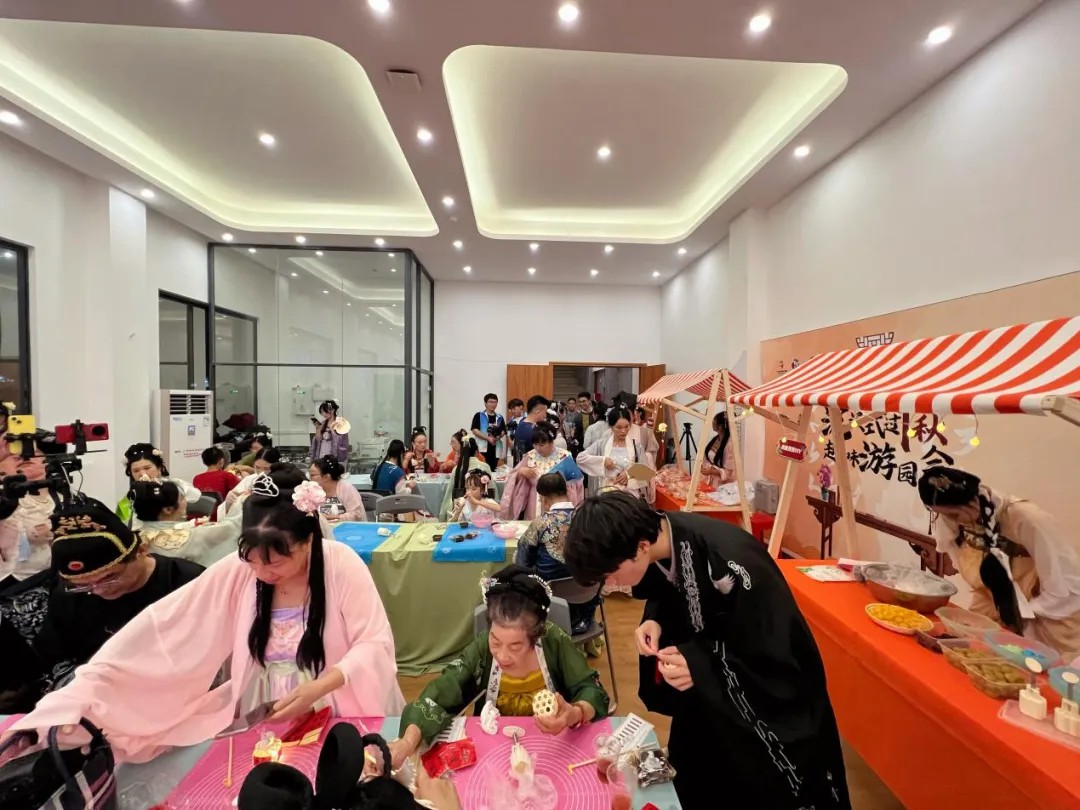 作为本次活动的主持人,2022级新闻学专业的汪一涵同学表示非常荣幸。“游园会”让她有不一样的体验:“大家都穿着汉服,开展古人的活动,自己做月饼,写书法,画团扇和点茶等活动,都让我更深入地学习到了一些中华传统的优秀文化,见识也更加广阔了。