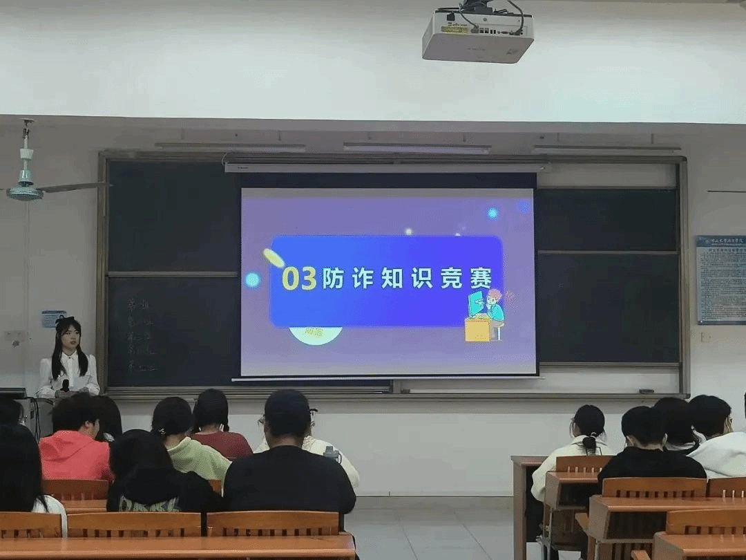 随后,由主持人组织展开防诈知识主题竞赛。本次知识竞赛以小组形式进行,同学们分好组后,按照要求举手抢答相关题目,最后以累计分值决胜的一组将获得奖品。每组同学都以积极踊跃的态度参与进来,现场气氛紧张而热烈。同学们在进行竞赛的同时积累了相关知识,并提高了对诈骗方案的辨别力和应对已发生事件的反应能力。