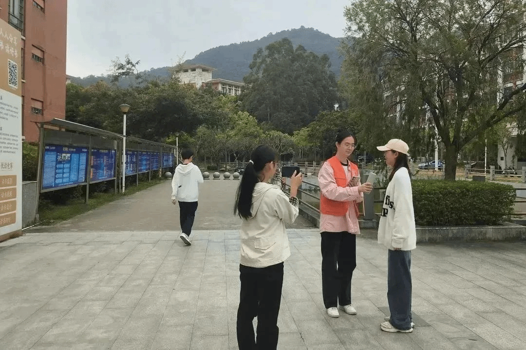 支部同志和23级同学们以小组为单位分布在校园里的不同位置,主要以校园街头采访的形式进行反诈视频的拍摄。在拍摄过程中,小组成员们积极参与拍摄讨论,分工有序。拍摄的反诈短视频使诈骗知识和事例更加通俗易懂、贴近生活,进一步提高群众们在生活中的反诈防骗意识。
