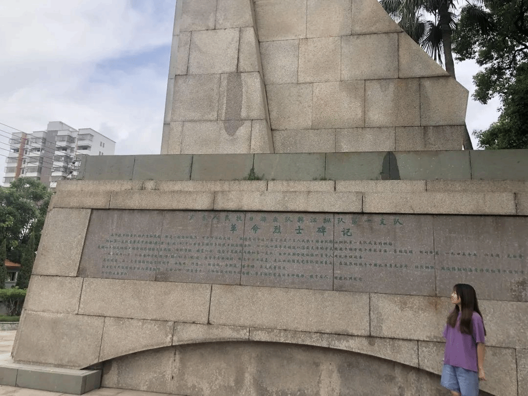 这次红色之旅,我一入门就看到非常高大的革命烈士纪念碑,纪念的是广东人民抗日游击队韩江纵队第一支队的革命烈士们,在纪念碑的侧面刻着碑记,记载了他们的英勇战绩,他们通过灵活的战术转战于潮澄饶平原敌占区,歼灭敌人。正是因为有他们的艰苦奋斗,才换来我们辉煌的今天。建此碑为纪念烈士们为革命事业壮烈牺牲,流芳青史,我们应学习他们崇高的精神,继续奋进。