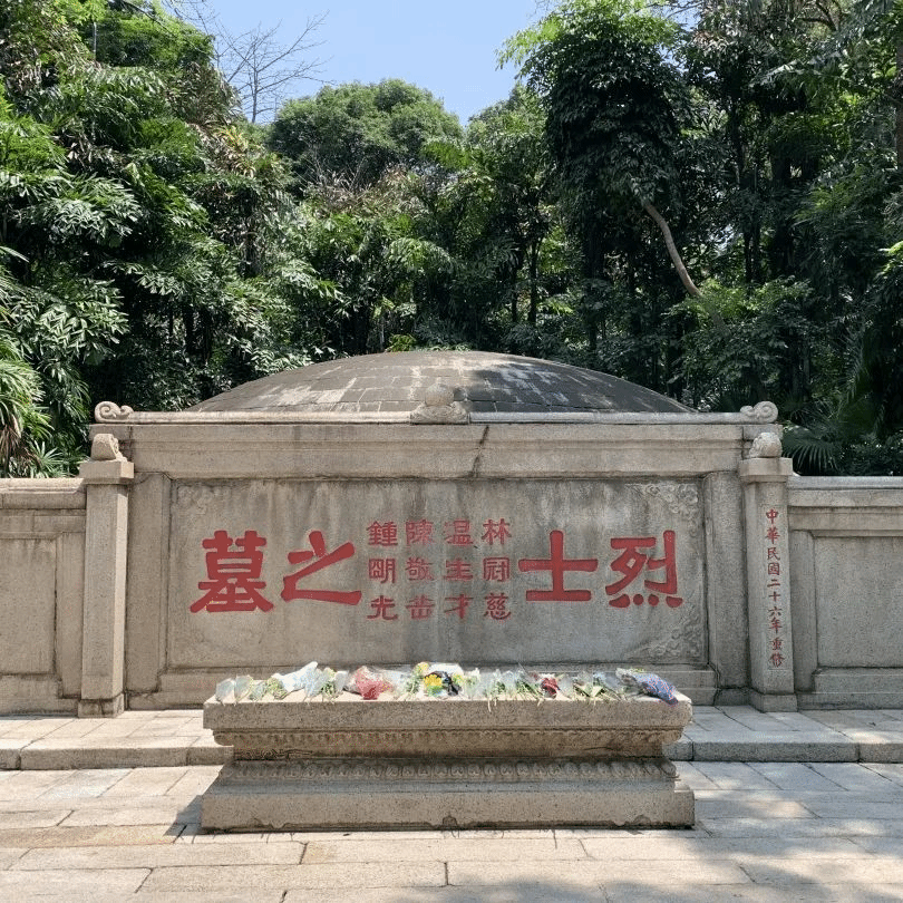 紧接着我们到了广州公社烈士墓,在钟惠宁同志的主持下,在场所有同志向烈士们默哀并依次献上白菊。望着偌大的陵墓,我们感受着它背后的革命壮歌,也让我们更加深刻了解到革命烈士们不怕牺牲、勇于战斗的革命精神。
