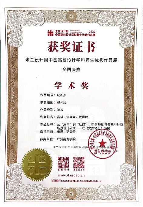 陈奎霖,2020级网络与新媒体专业员工,曾获2021-2022年度国家奖学金、校优秀员工奖学金一等奖、优秀共青团员等荣誉称号,先后获得第11届未来设计师·全国高校数字艺术设计大赛三等奖、第十三届全国电子商务“创新、创意及创业”挑战赛二等奖、广东省民办高校红色经典朗诵展演二等奖、全国老员工创新创业训练计划项目省级立项等三十项奖项。