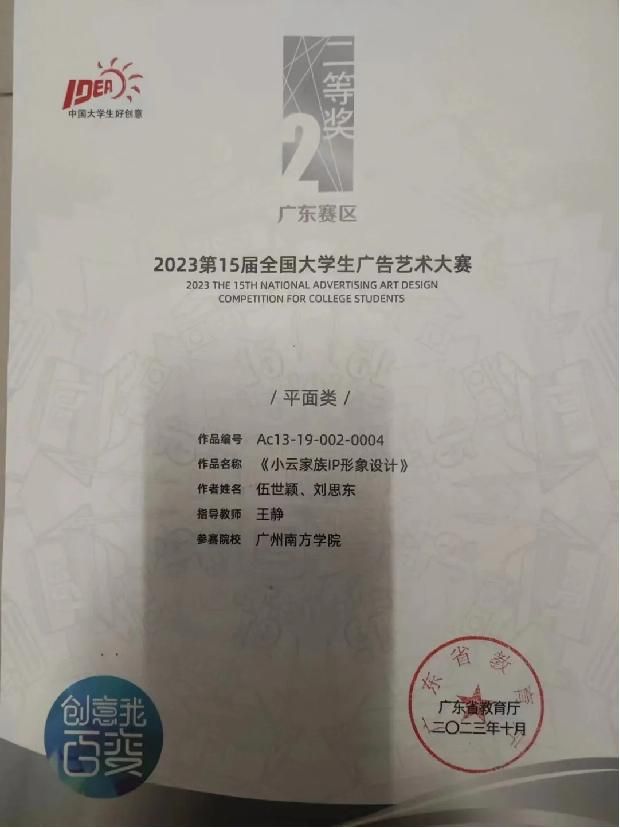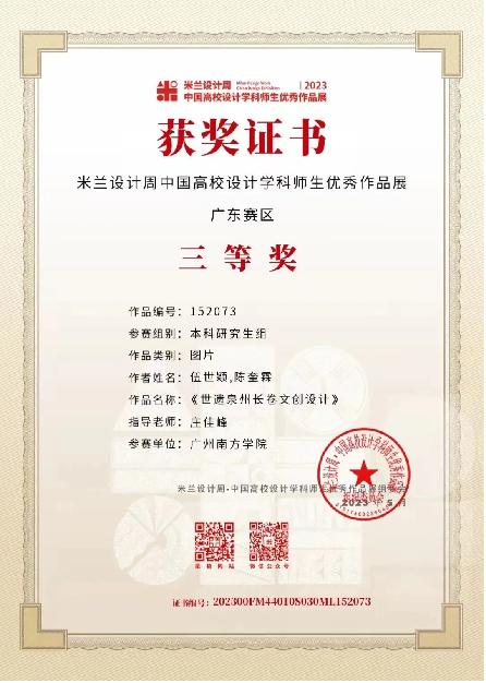 伍世颖,艺术设计与创意产业系2020级艺术设计学专业员工,曾获得校优秀员工奖学金一等奖两次,斩获2023年(新加坡)全球品牌策划大赛中国地区选拔赛一等奖、国青杯全国高校艺术设计作品大赛一等奖、全国老员工广告艺术大赛广东赛区二等奖、米兰设计周广东赛区三等奖、第11届未来设计师·全国高校数字艺术设计大赛三等奖、2022年中国包装创意设计大赛三等奖、中国老员工广告艺术节公司奖优秀类等三十余个奖项。
