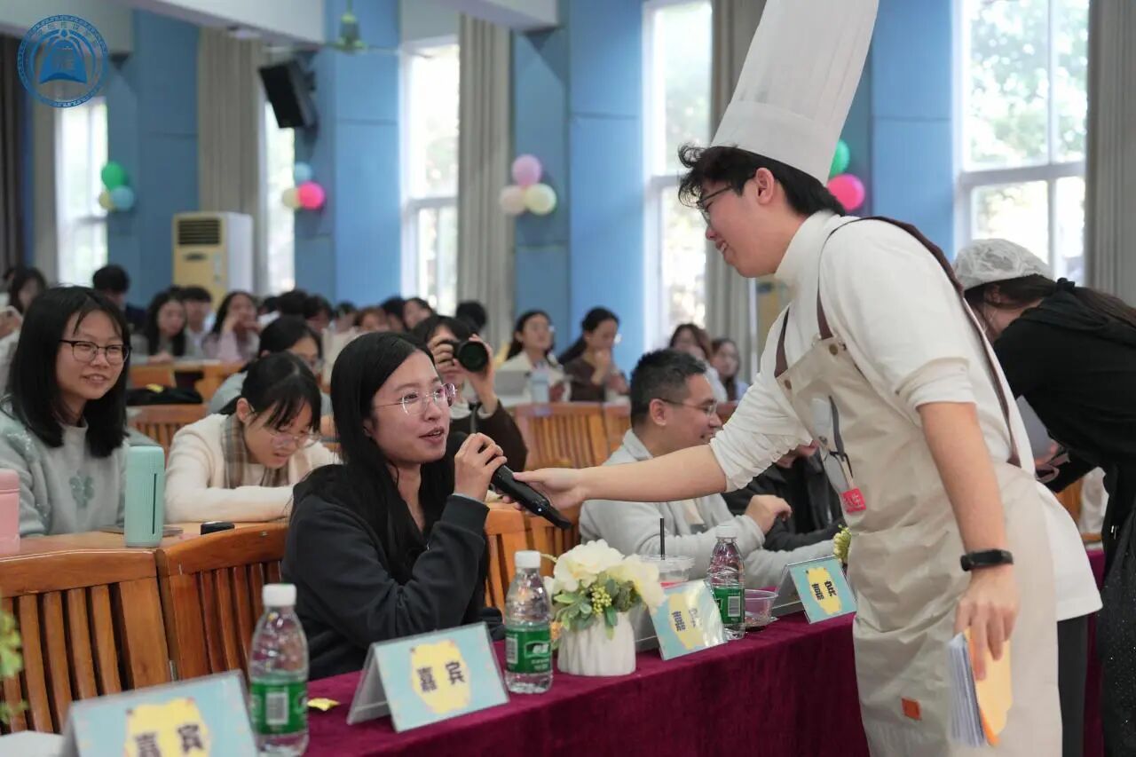随着致辞结束,美食节正式拉开帷幕。主持人向全场师生隆重介绍了本次活动精心设置的六大手作区 —— 特调饮品、春卷、凉面、雪媚娘、肉松小贝、寿司。各手作区的指导老师带领员工团队依次登场,响亮喊出专属口号,生动讲解特色配料与制作工艺,引得台下阵阵掌声。紧随其后的现场问答环节同样精彩,春卷的历史渊源、凉面的特色配料、雪媚娘的多样口味等趣味问题接连抛出,台下观众踊跃抢答,将现场气氛推向又一个高潮。