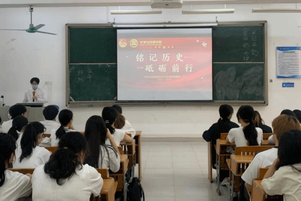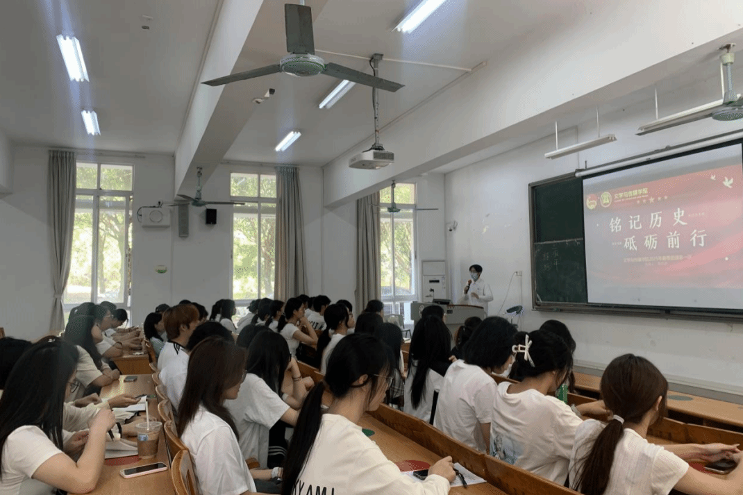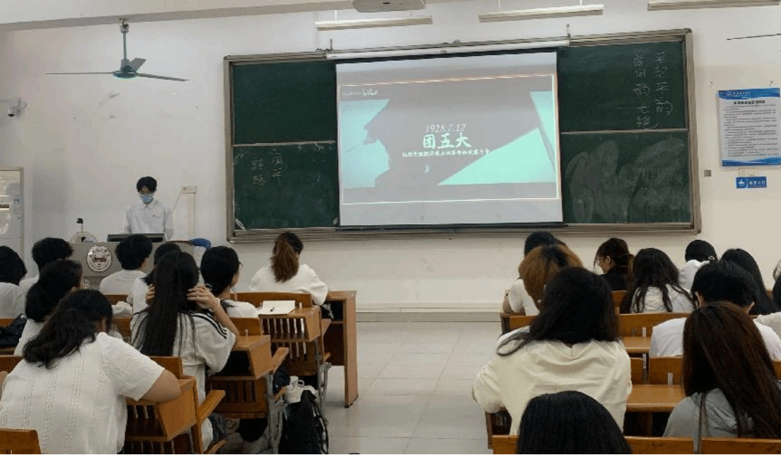 首先,主讲人李沃谚同学为入团积极分子们讲述中国共青团的百年征程。从1919年5月那场改变民族命运的运动开始,共青团便与中国共产党,与中国的命运同频共振。在中国共产党的带领下,共青团在百年间涌现出一批又一批照亮时代的青年力量,入团积极分子们深知自己要赓续"永久奋斗"的红色基因,又要开拓"敢为人先"的创新路径,让青春在传承与创新中绽放光芒。