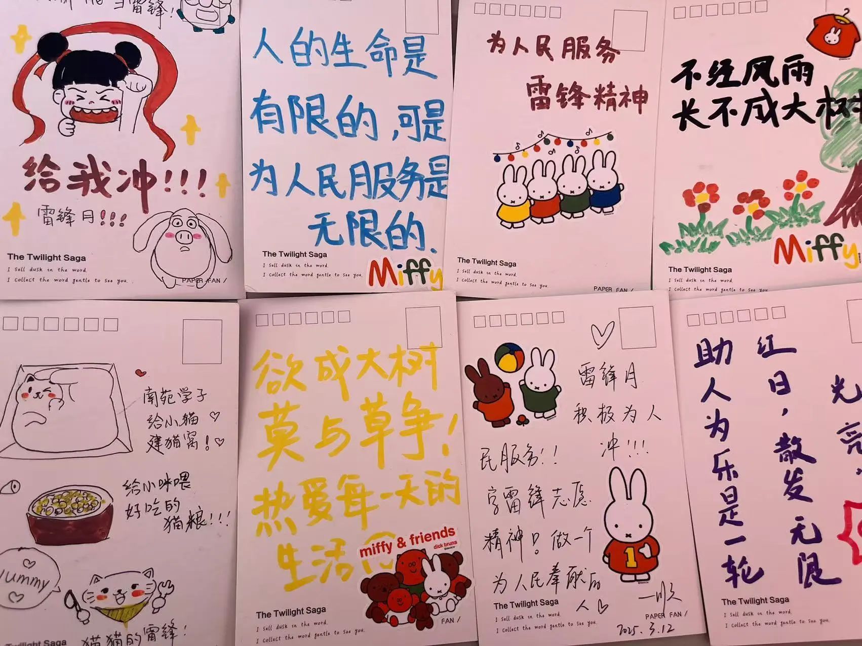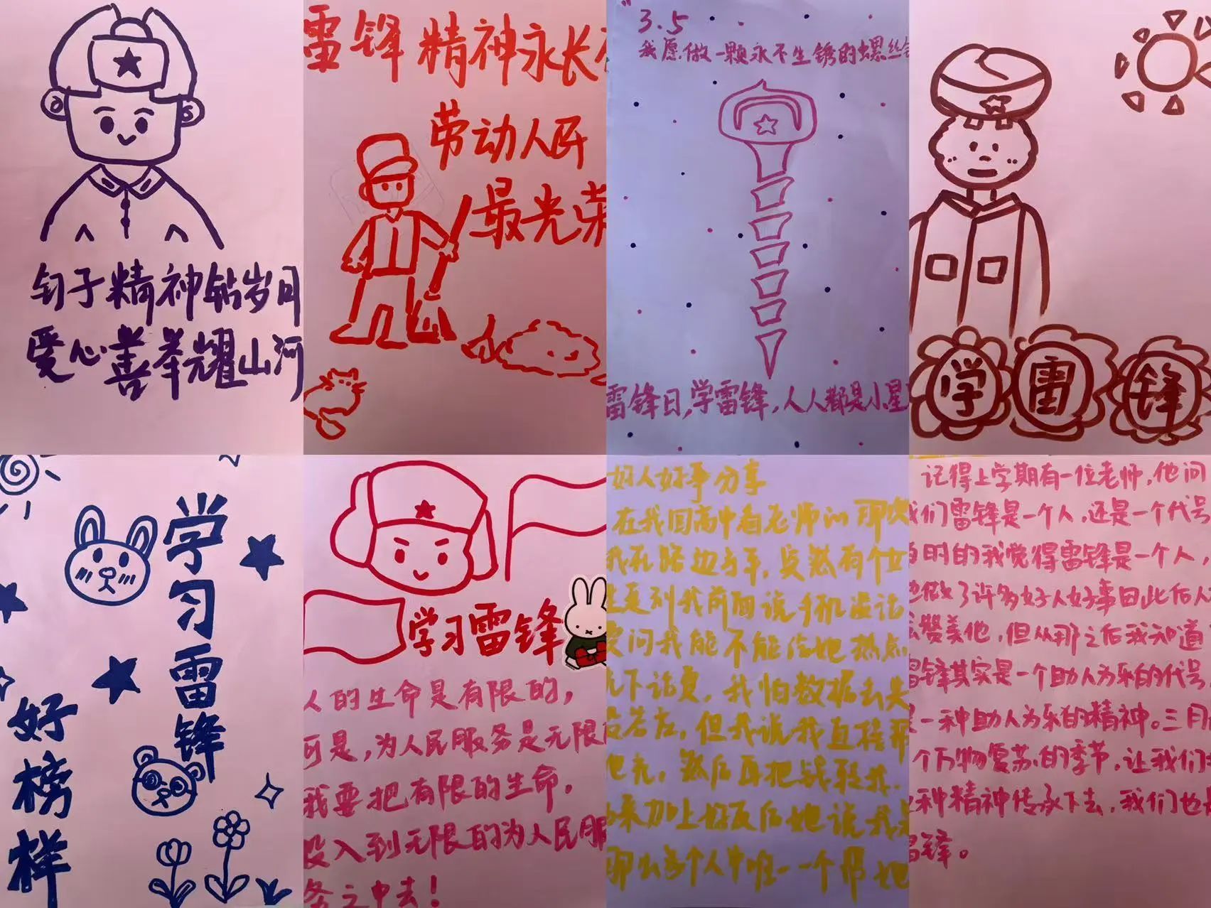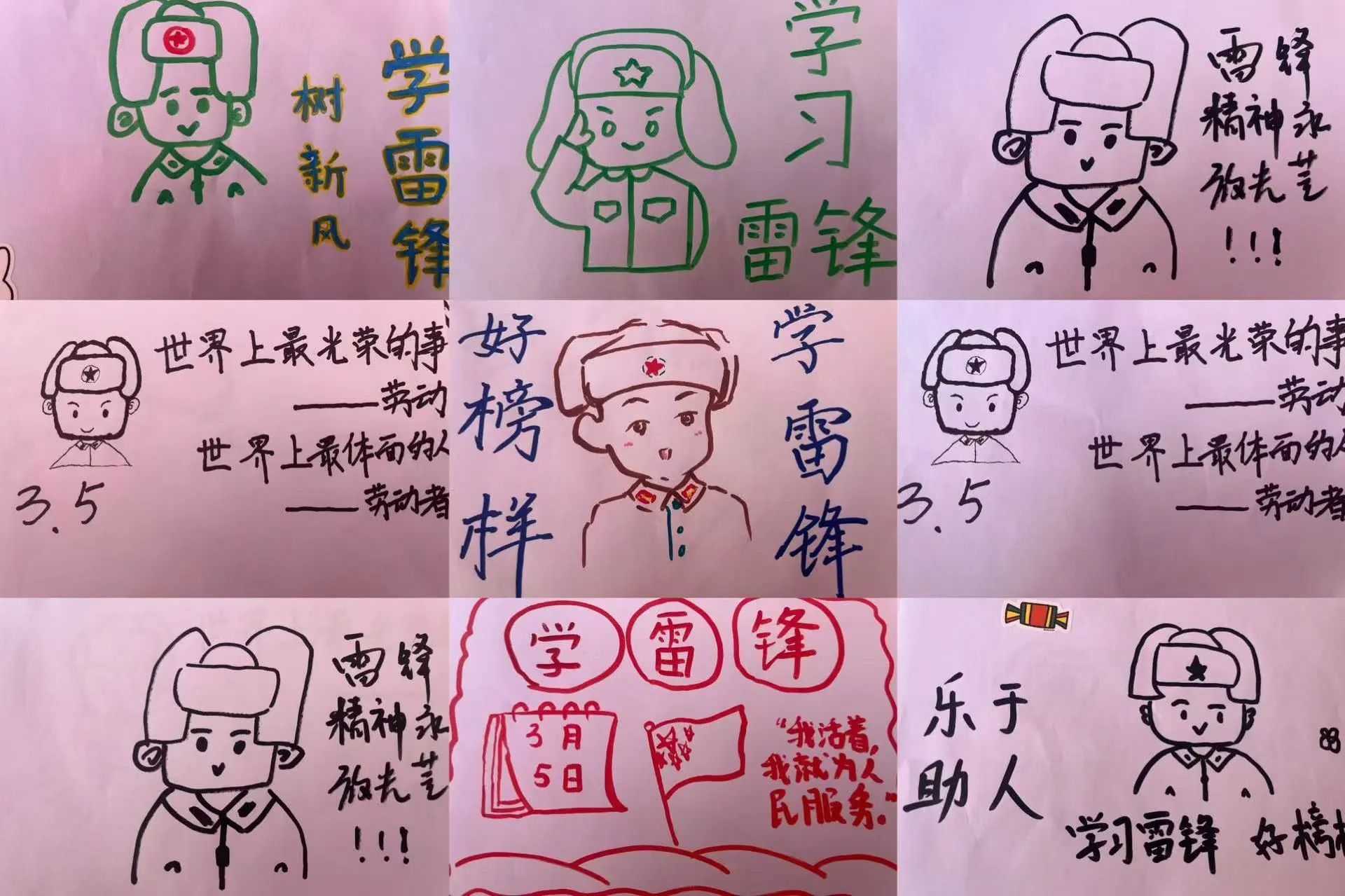 在这次活动中,我们收到了许多同学们饱含着热情创作的作品,细腻笔触下的雷锋形象跃然纸上,真挚话语间讲述着身边的每一个温暖瞬间。