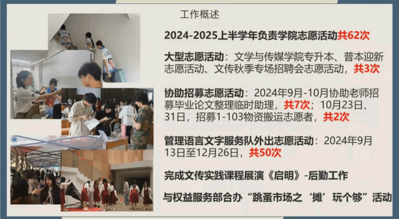 同时,他们也指出工作中存在的一些不足,如部门工作创新性不足,活动形式单一等问题。为解决这些问题,他们提出未来要磨练创新思维,探索新的工作方法,将创新贯穿团学工作全程。