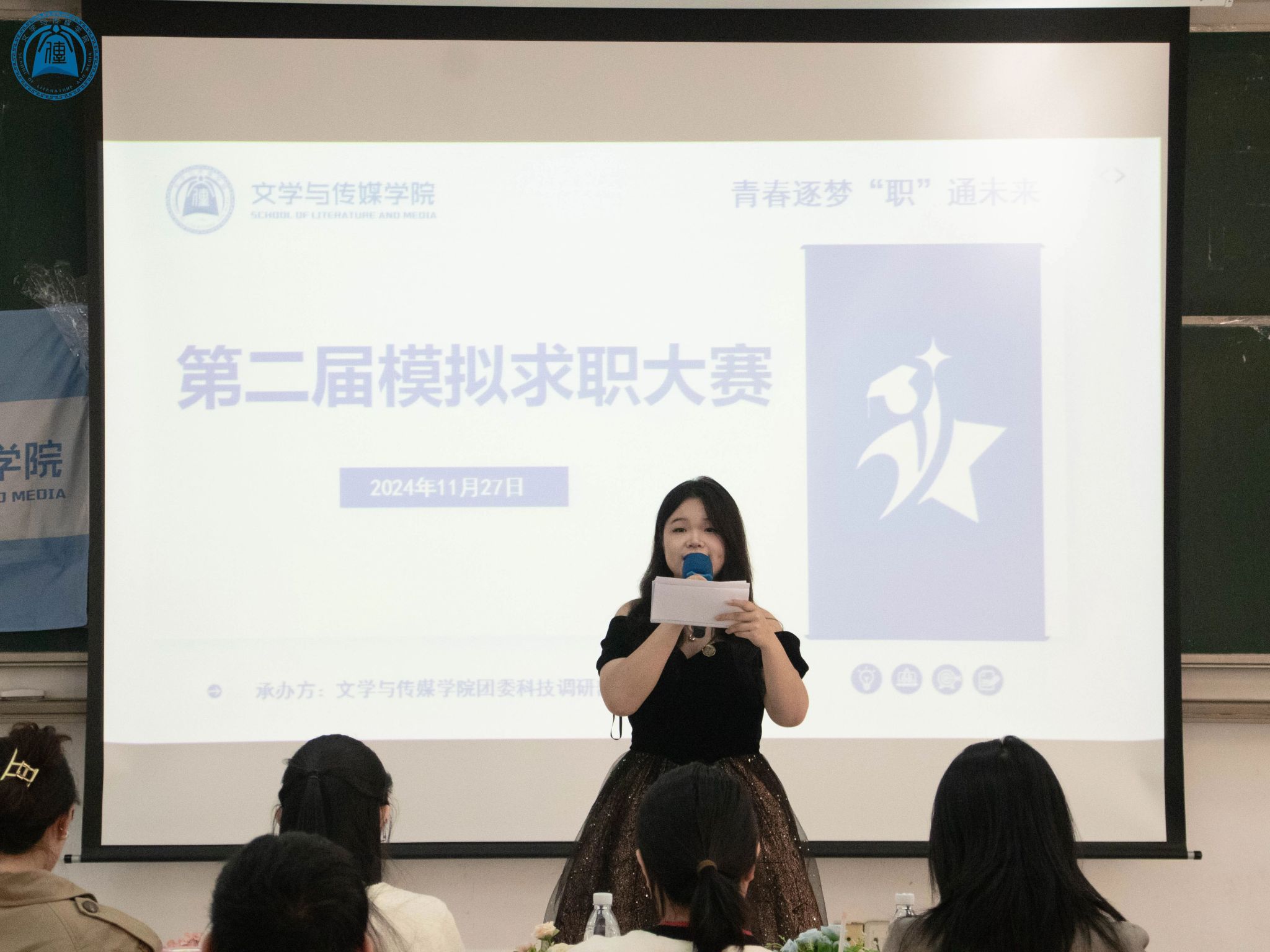 此次决赛环节高度还原真实的求职环境,全面考验了选手们的综合能力。在成长赛道环节,气氛紧张而热烈,选手们逐一登台,首先进行自我介绍,随后随机抽取职场情景模拟类题目进行现场作答。唐熙彤同学作为开场选手,以其出色的表现点燃了比赛的激情。紧接着,廖顺华、吴昊、罗茜、胡晓婷等选手也依次展现了他们的才华和应变能力。