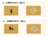 2.气:每个棋子所在的交叉点周围的空位称为“气”。棋子拥有的气越多,生存的可能性越大。